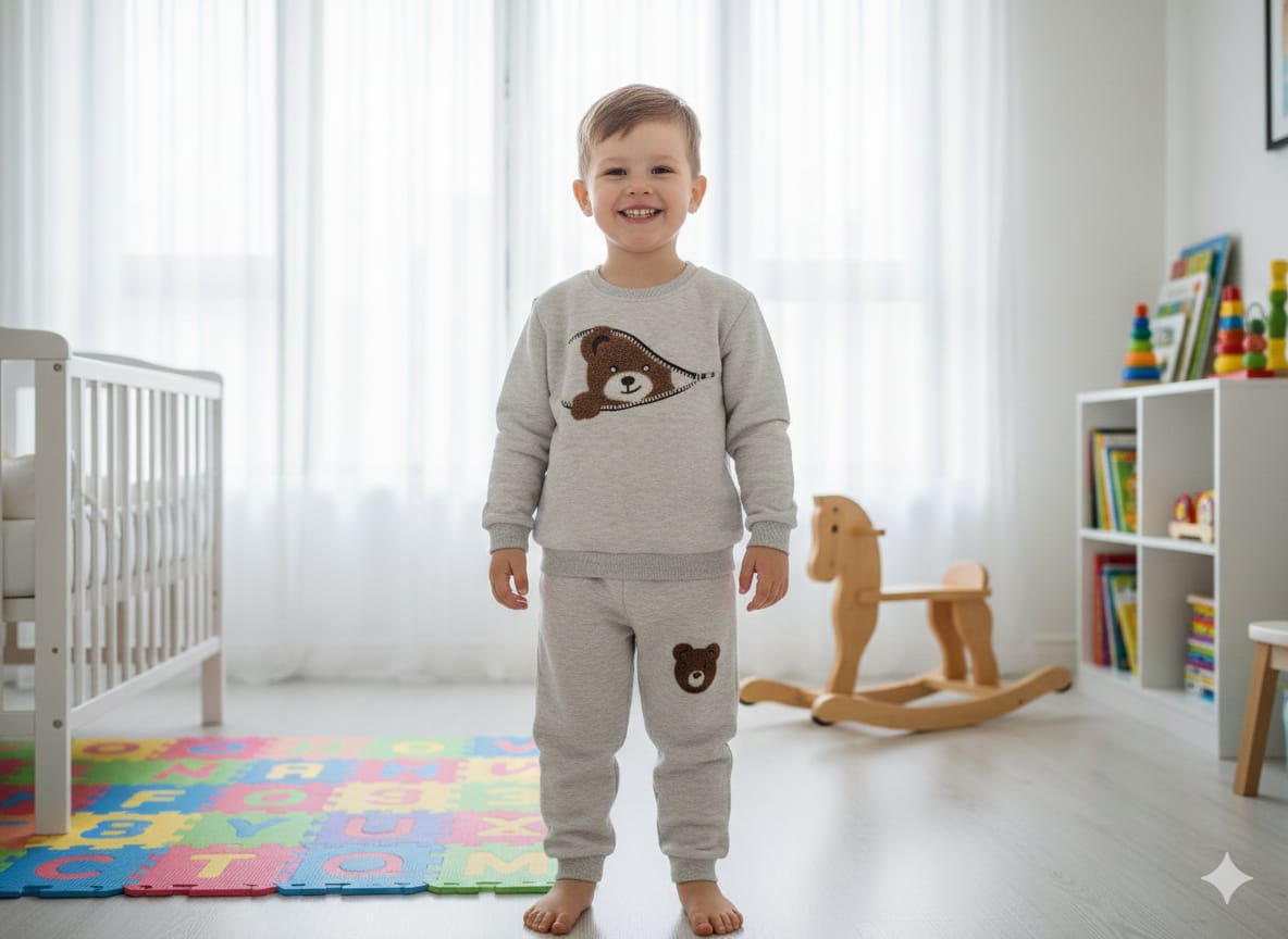 Fermuar İçinden Çıkan Ayıcık Baskılı Çocuk Eşofman Takımı