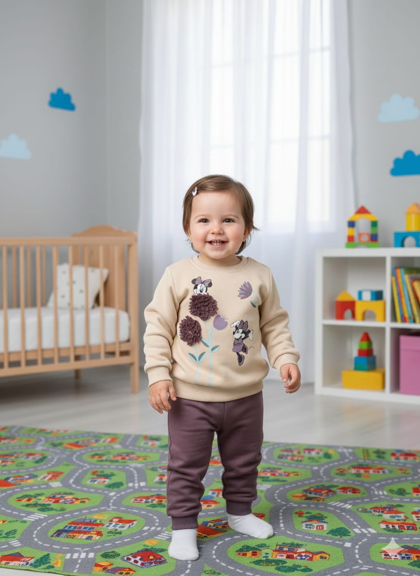 Kız Bebek Desenli Sweatshirt Takım