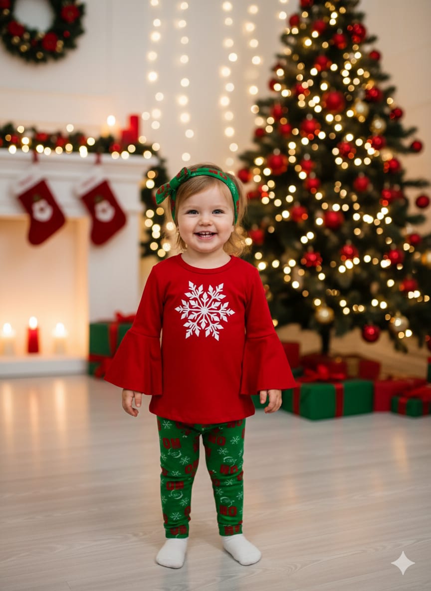 Minik prensesinizin bu yılbaşı sezonunda hem şık hem de sıcacık olmasını sağlayacak bu özel 2 parçalı takımla tanışın! Kırmızı ve yeşilin mükemmel uyumu, evdeki kutlamalardan profesyonel yılbaşı fotoğraf çekimlerine kadar her ortam için ideal bir görünüm yaratır.