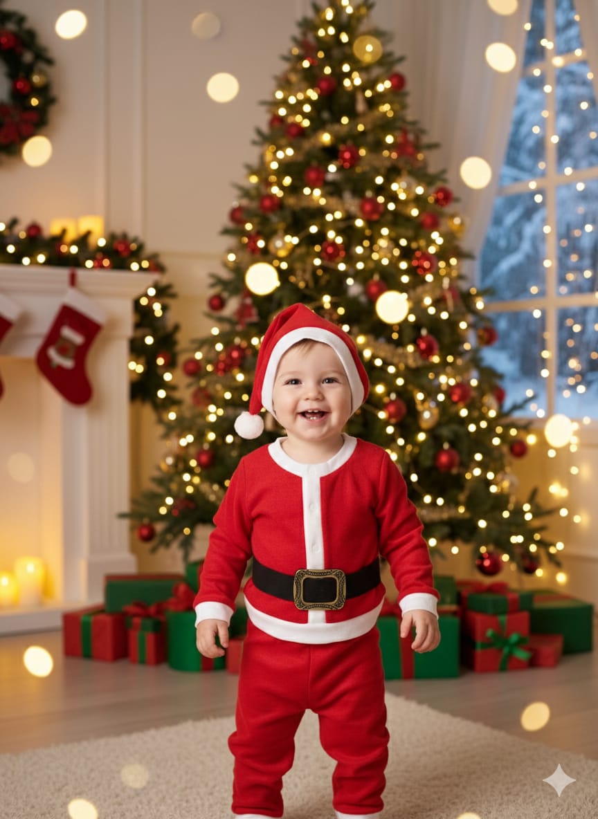 Minik meleğinizin ilk veya en özel yılbaşı kutlamalarını unutulmaz kılmak için tasarlanmış bu 3 parçalı sevimli Noel Baba Kostümü ile tanışın! Yumuşak dokusu ve eksiksiz aksesuarlarıyla bebeğiniz, tatil ruhunun en sevimli temsilcisi olacak.